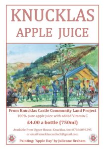 KCCLP has a good crop of apples – plenty sold, some already past their peak, some still in the orchard and a lot made into sweet, sharp juice..- £4.00 per bottle.